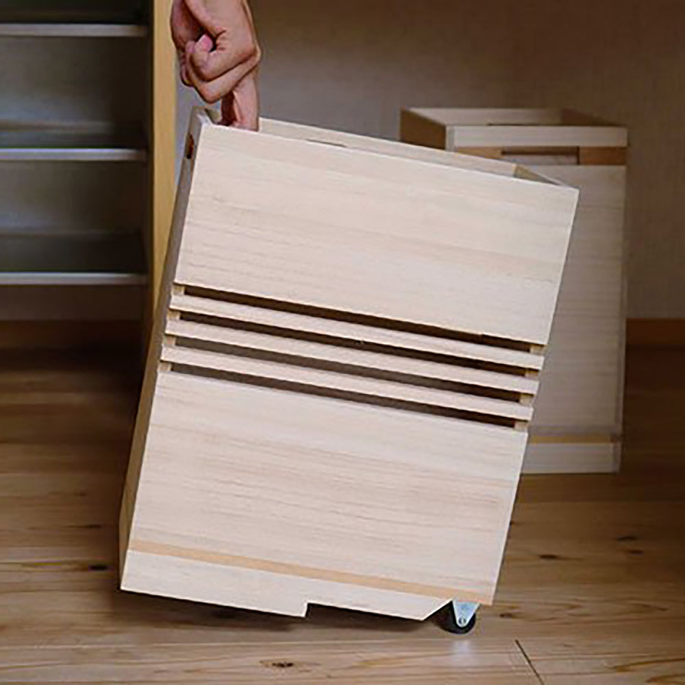 桐箱の老舗、増田桐箱店がつくる「生活に取り入れる桐箱」として開発した使いやすさを追求した桐の野菜箱。