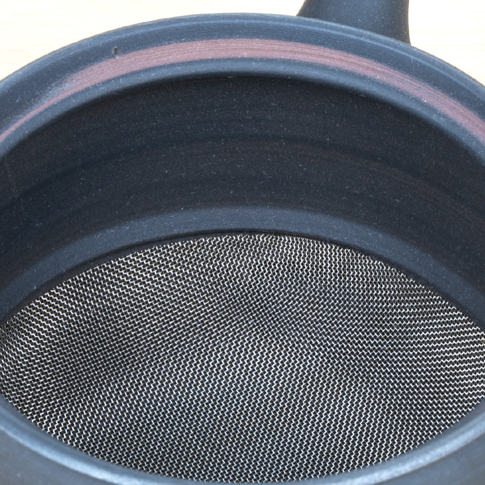 注ぎ口の5mm~15mm上に網が位置するため、網で濾されたお茶だけを注ぐことができます。