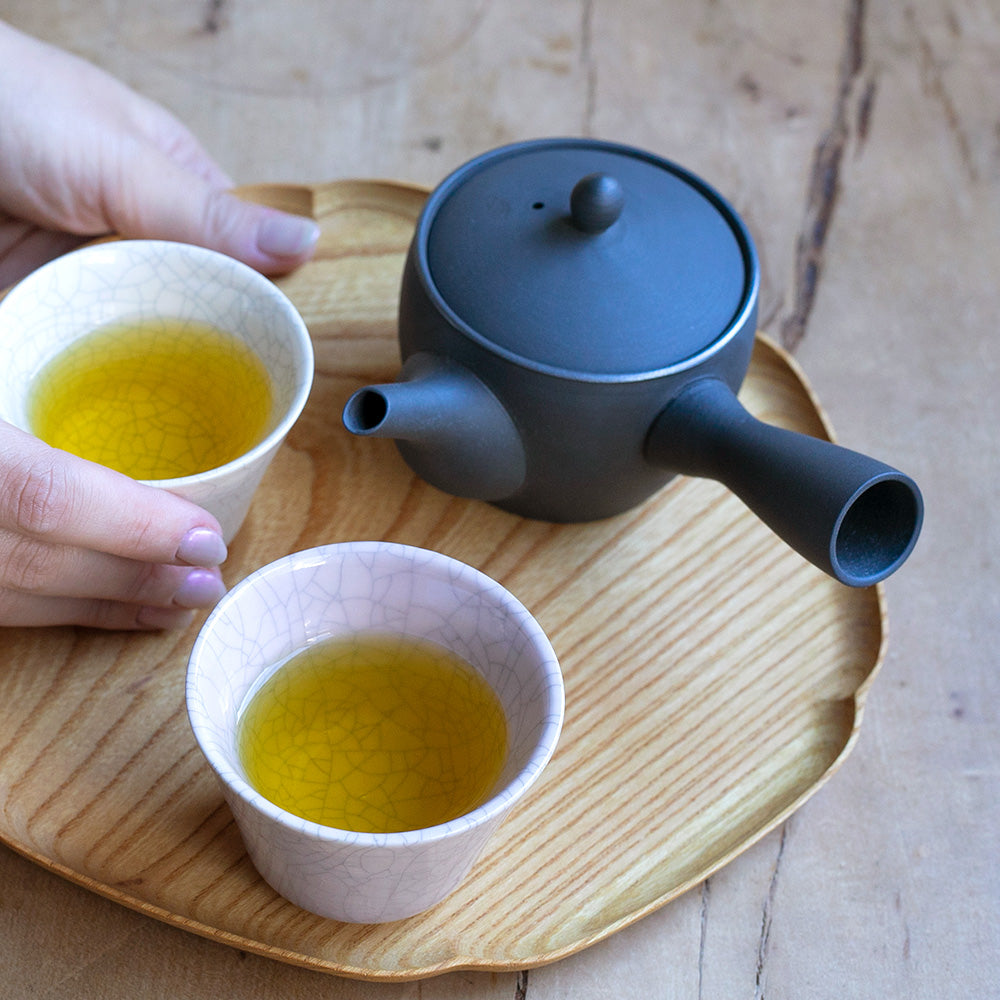 陶器と磁器の中間にあたる炻器は、水分を外へ逃がさず耐熱と保温に優れていますので、程よい熱さのお茶をお楽しみいただけます。