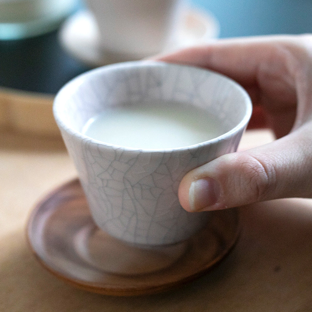 手にそっと収まる姿が何とも可愛らしく、釉薬の透明感と貫入の表現と併せて上品な雰囲気を演出します。