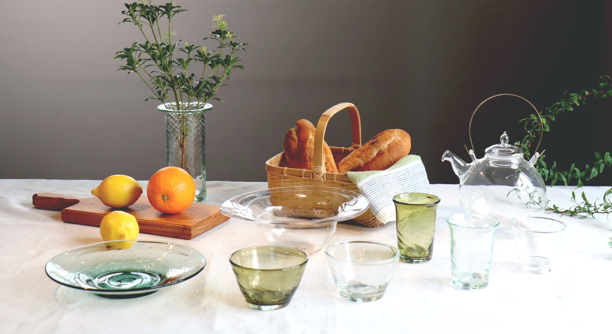光を浴びてきらきらと輝くガラスの器は、見た目にも涼やかで、いつもの食卓を爽やかに演出してくれます。