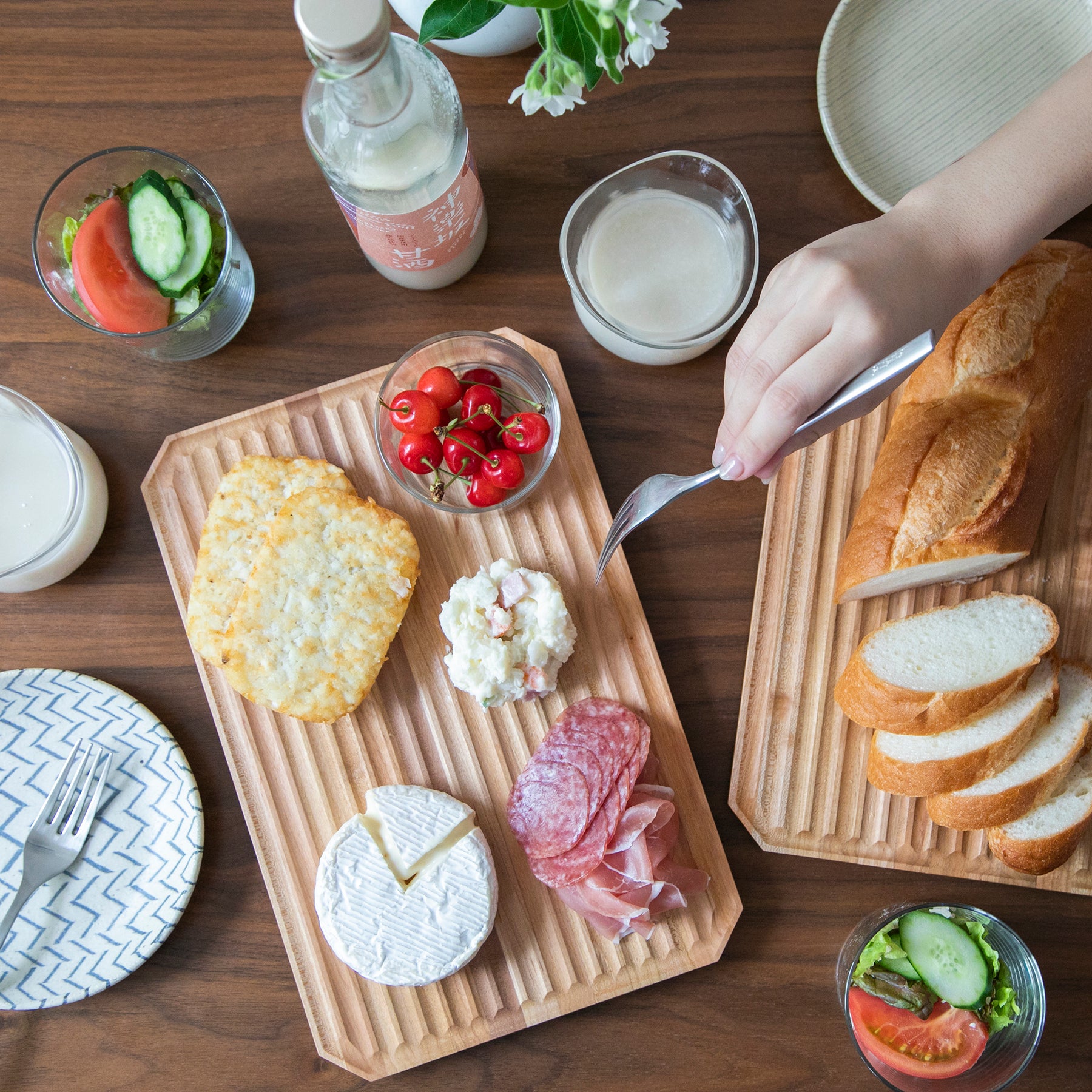 ブランチボード 横幅27.6cm パンやパンケーキ、サラダなどを乗せてブランチにちょうど良いサイズ感。 シャルキュトリーボード 横幅31.5cm お皿代わりやプレートに。洋食・和食・デザートなど、どんなお料理にもお使いいただけます。