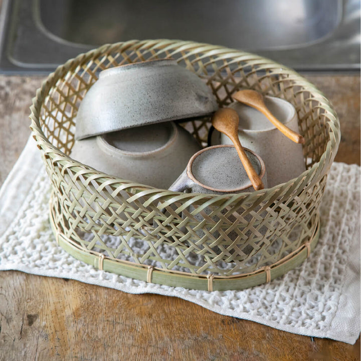 耐水性に優れた竹の特製を活かした、茶碗かごです。