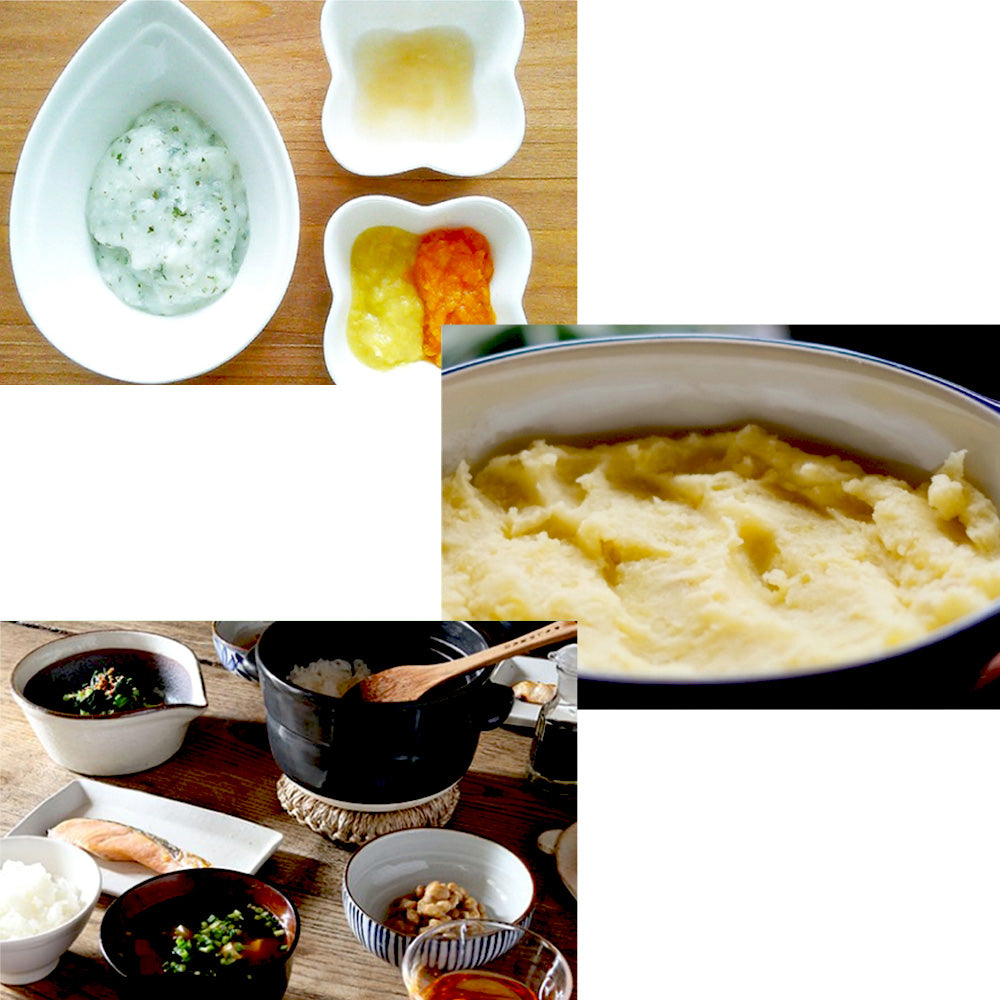 お米や野菜・魚などをすり潰して離乳食に。